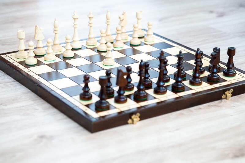 Közkedvelt fa sakk-készlet, összecsukható sakktáblával. Kijelölt notáció (számok és betűk a jobb tájékozódás érdekében) a sakktábla kerülete mentén. A fa sakkfigurák a sakktábla belsejében tárolhatók. Mindegyiknek megvan a maga helye, így mindig biztonságban vannak.