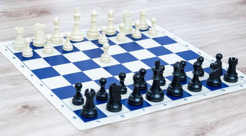 Gördülő sakktábla – kék Méret: 50 × 50 cm Mezőméret: 5,5 × 5,5 cm