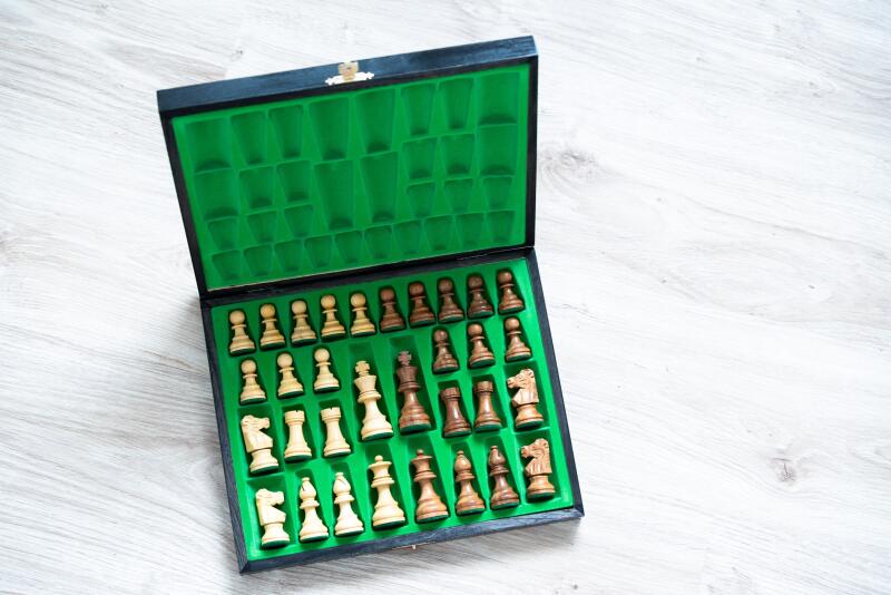 Sakküzlet Francia akácfa sakkfigurák fekete fa dobozban
