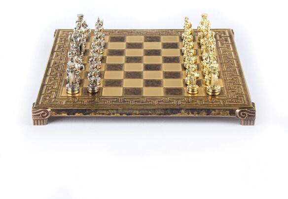 Bronz sakktábla 28 × 28 cm-es méretekkel, ideális kompakt helyekre.