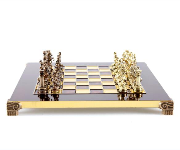 Bronz sakktábla 28 × 28 cm-es méretekkel, ideális kompakt helyekre.