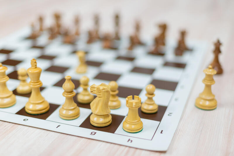 Sakküzlet KLASSZIKUS fa sakk-készlet feltekerhető barna sakktáblával