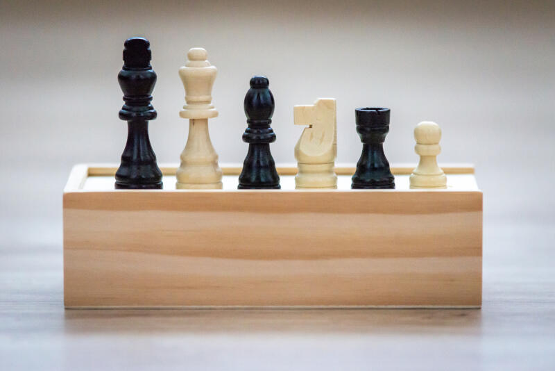 A készlet fa sakkfigurákat tartalmaz, sakktábla nélkül.