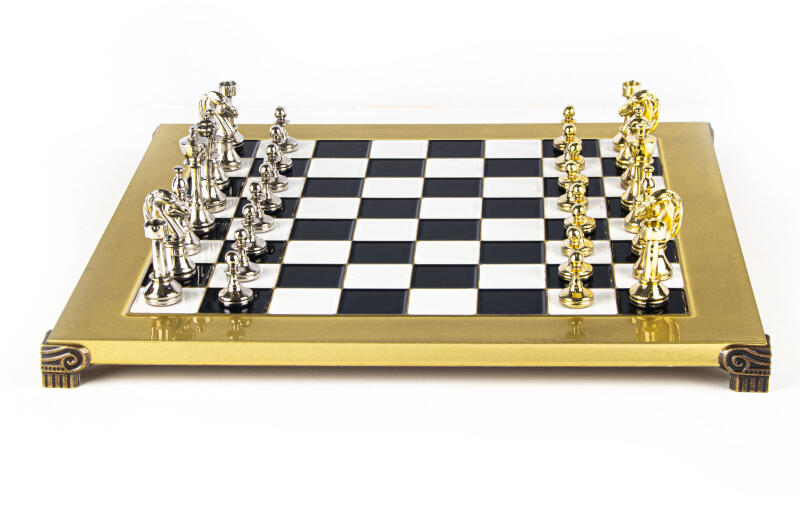A széles körben ismert és népszerű Staunton sakkfigurák Howard Stauntonról, korának egyik legjobb játékosáról kapták nevüket. A huszár, az összes sakk-készlet legösszetettebb és legjellegzetesebb darabja, egy valósághűen faragott lófejjel rendelkezik, amelyet valószínűleg a Parthenon keleti lábazatán lévő szobor ihletett. A fémből készült Staunton by Manopoulos gyönyörűen kiemeli ezeknek az eredeti figuráknak az építészeti történetét, miközben megőrzi időtlen dizájnjukat.