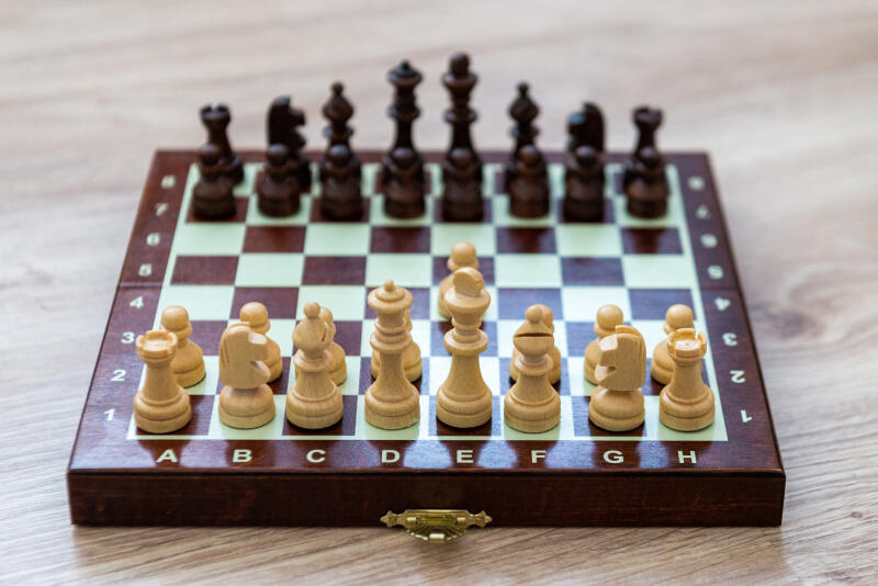 Utazásra és mindennapi játékra alkalmas praktikus kicsi mágneses fa sakk-készlet.