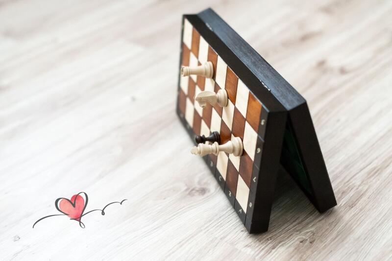 Fából készült mágneses sakk-készlet, utazáshoz is alkalmas.