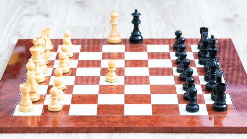 Ez a modell a válogatott, piros pácolt kőrisfa tónusait ötvözi a fehér juharfa természetes tisztaságával. Felülete fényes lakkozású, amely kiemeli a fa erezetének gazdagságát, és sima textúrát biztosít a sakkfigurák pontos és könnyed mozgatásához.