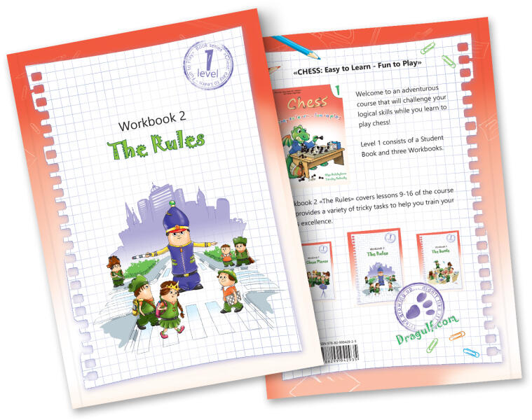 Workbook 2 The Rules covers lessons 9-16 of the course and provides a variety of tricky tasks to help you train your chess excellence.
